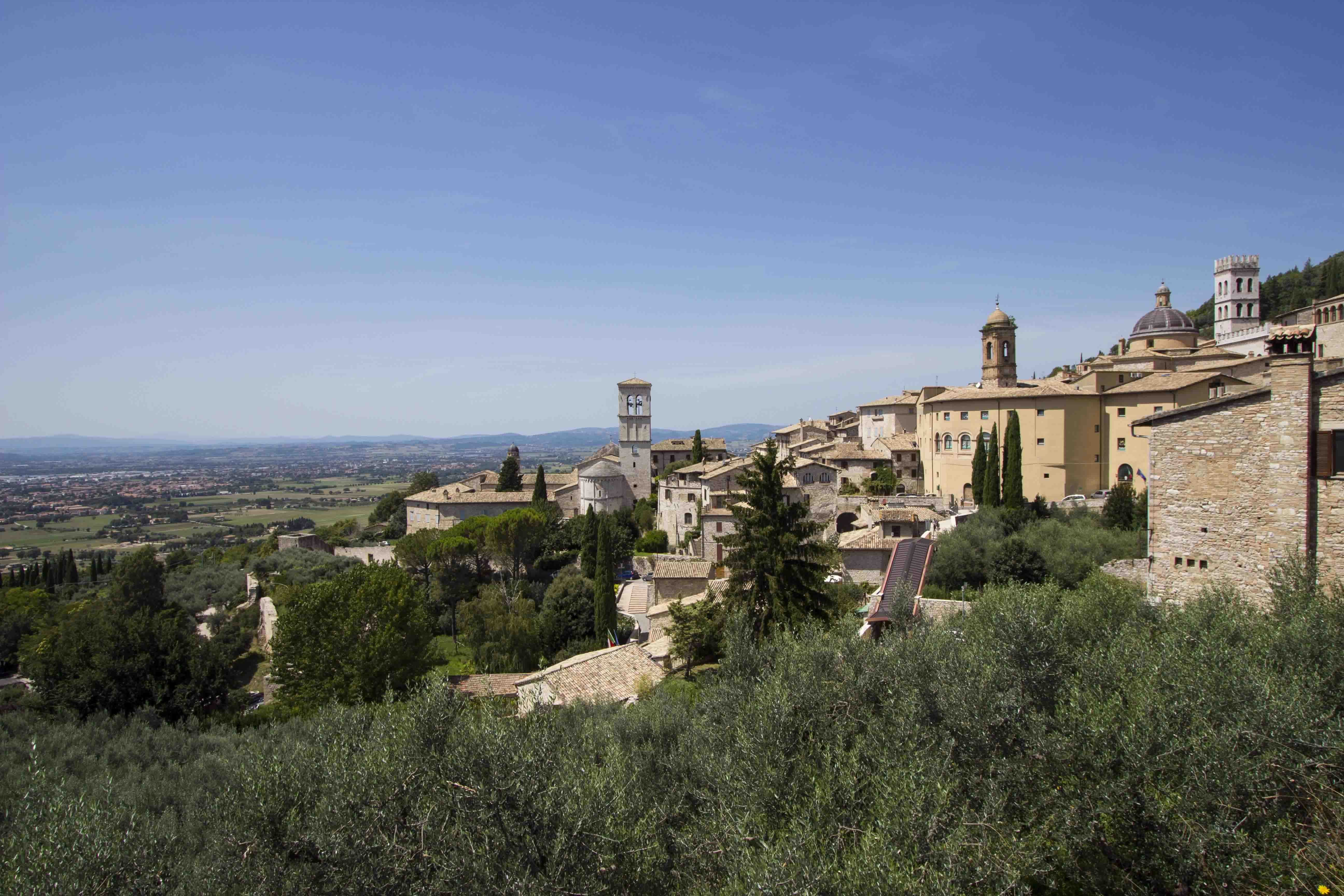 Asisi strategical location on the hillside of the Subasio mountain makes it the perfect vantage point. Beautiful landscape of green Umbria contrasts with the bright Asisi buildings.