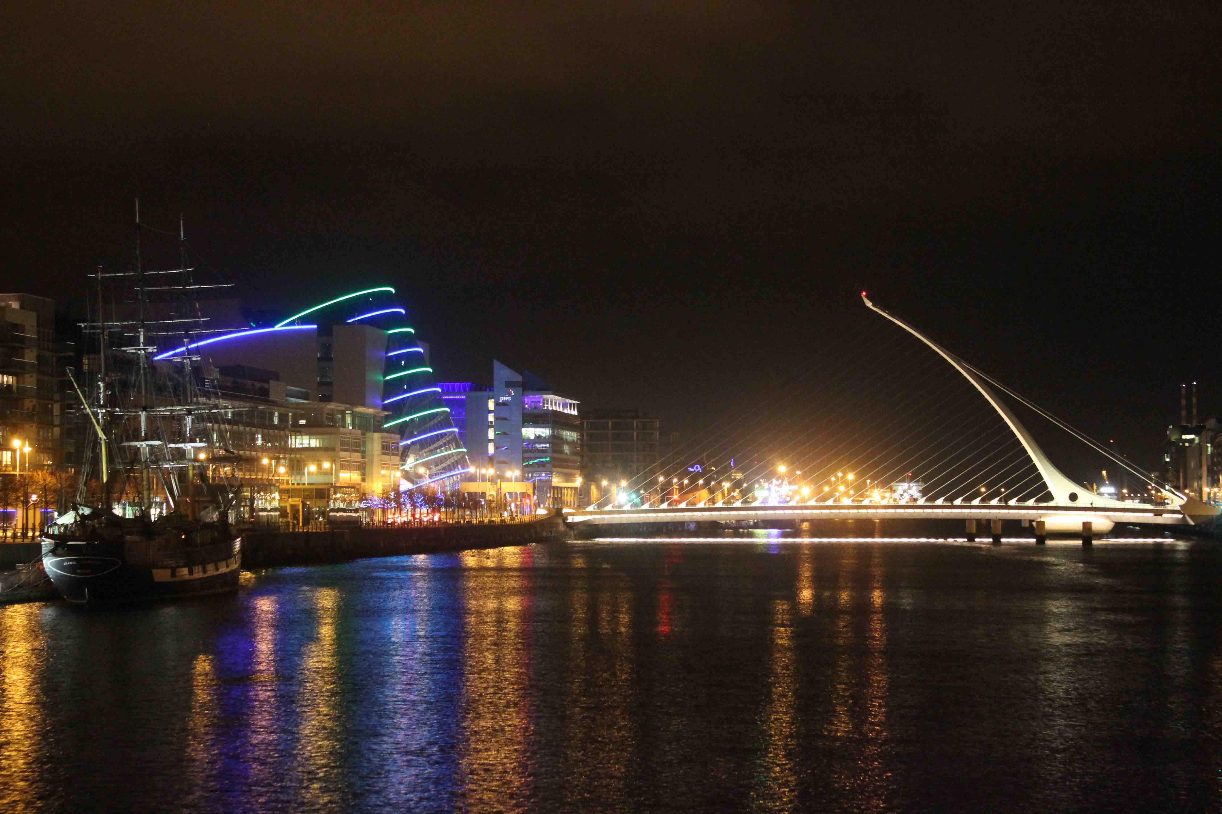 There’s beautiful boulevard, close to the Trinity College, on the Liffey River. Here you can admire modern buildings with Samuel Beckett’s Bridge and Convention Center.