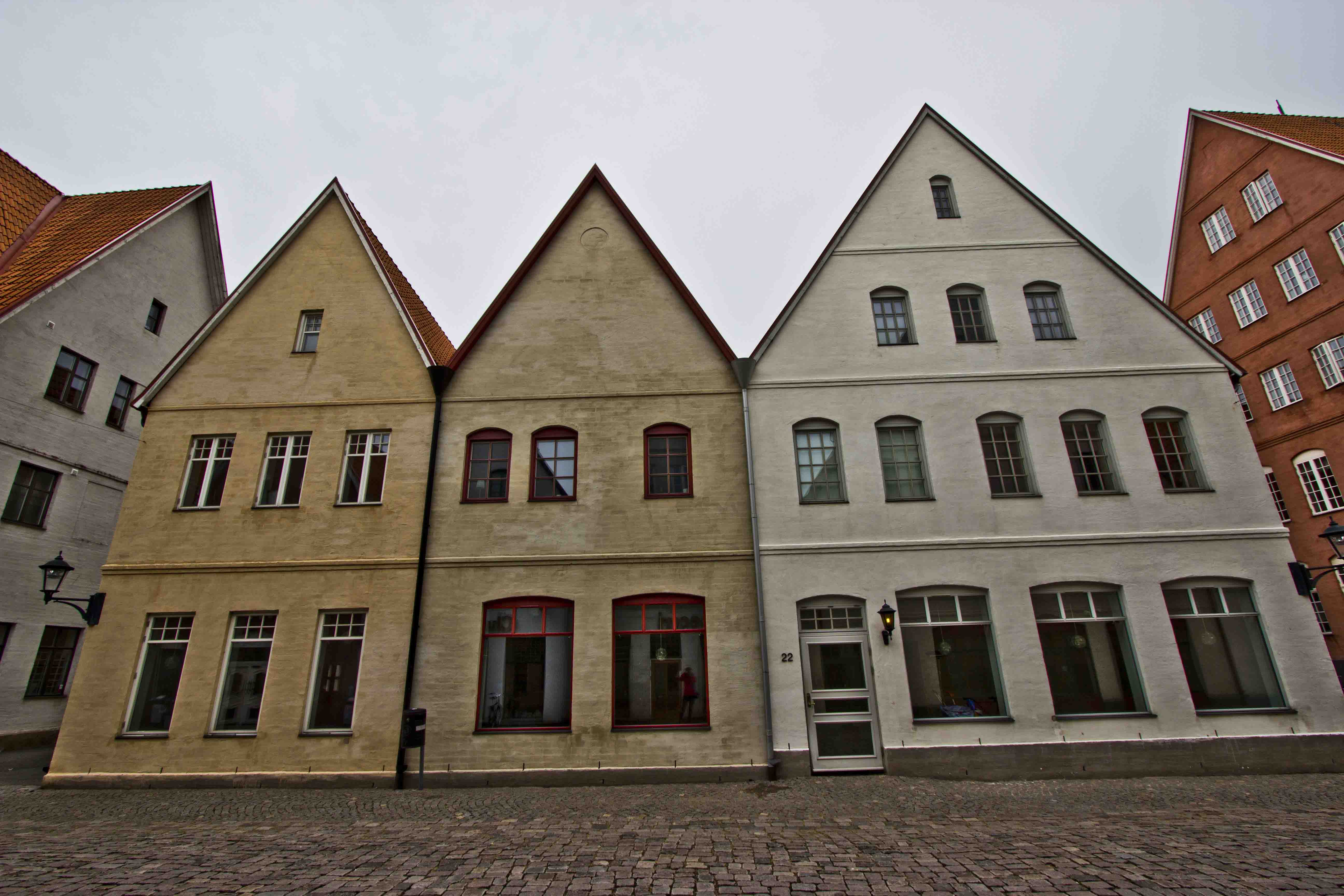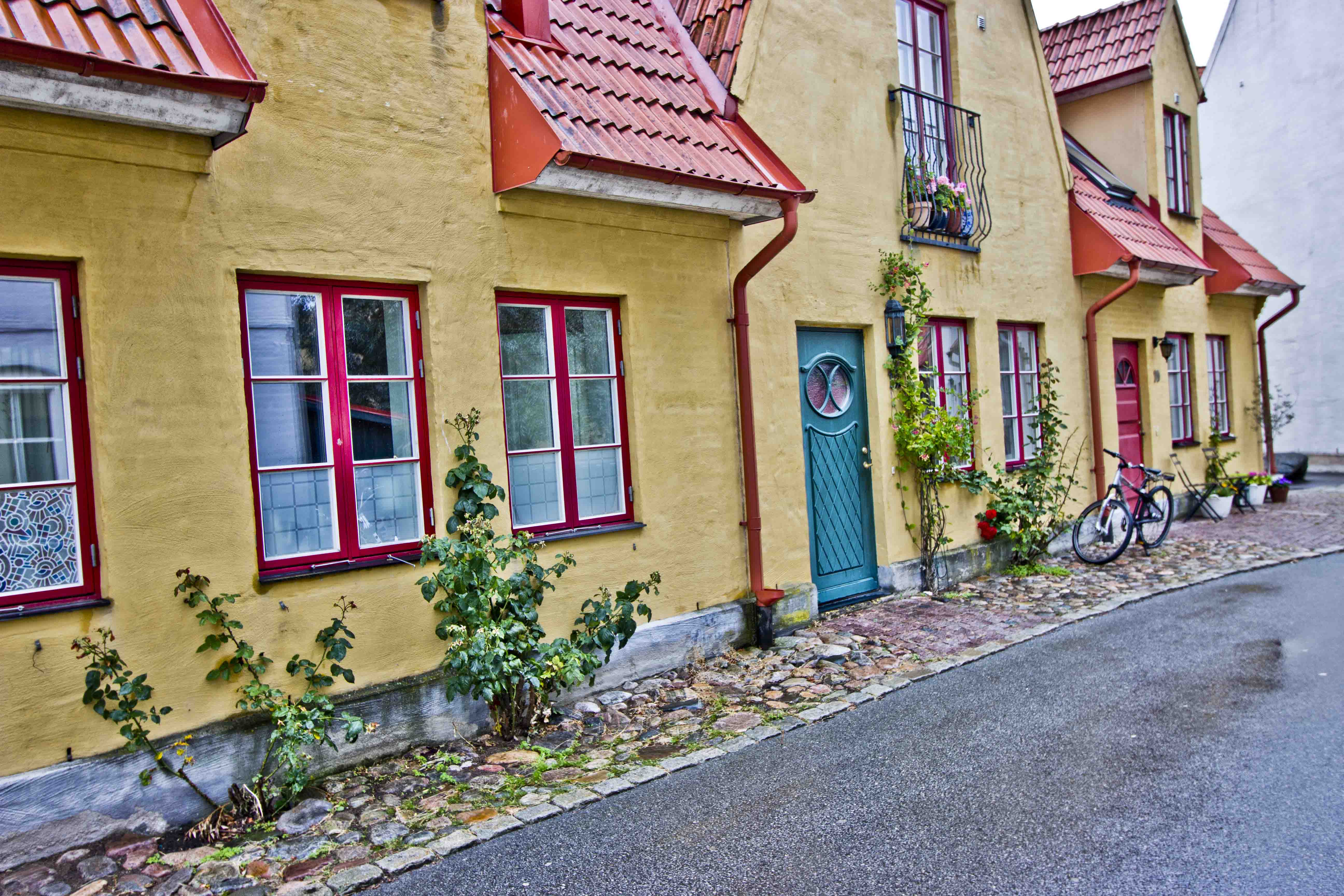 Pastel townhouses with soaring roofs, decorated with colorful windows and doors, winding along cobblestoned lanes, look fabulous.