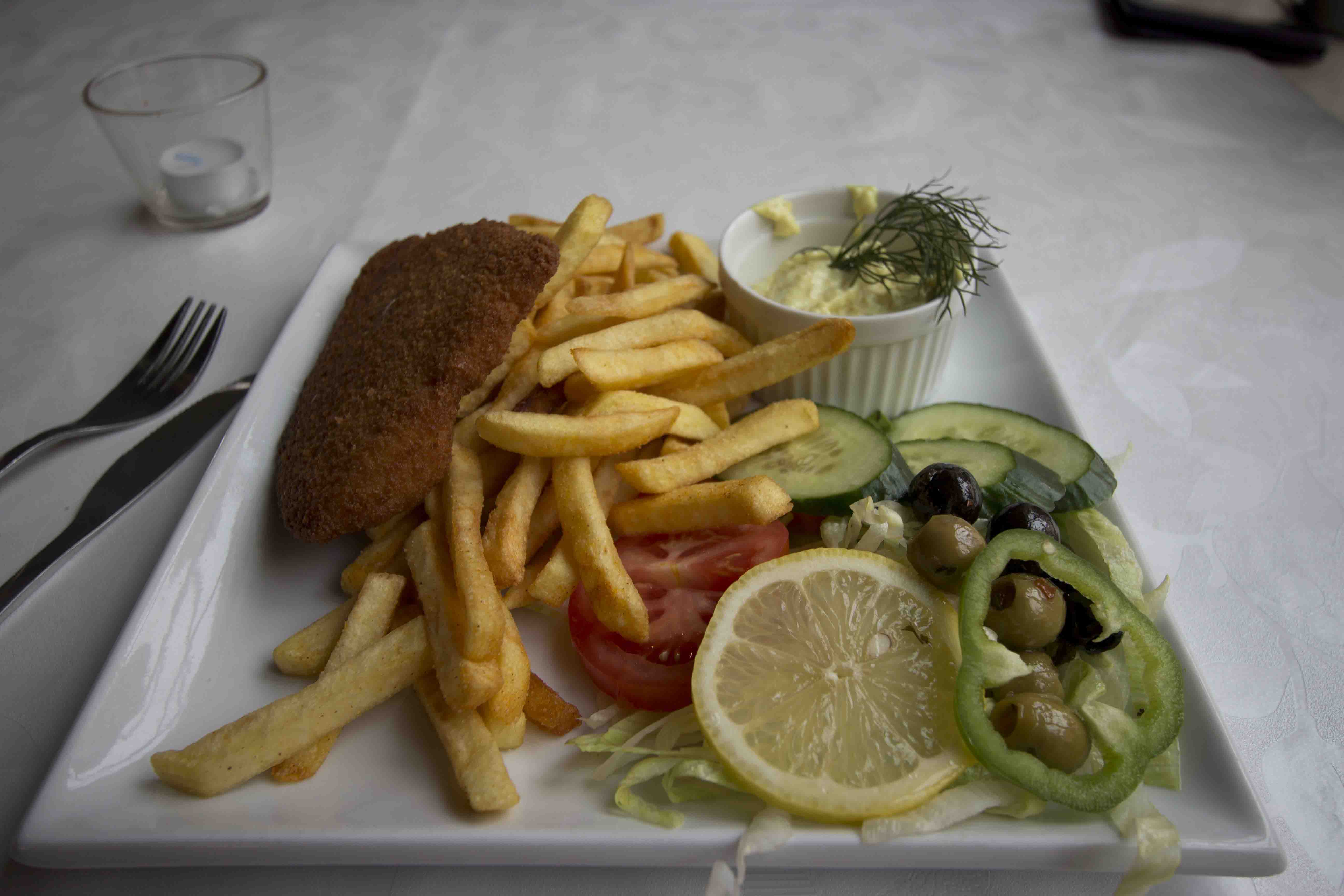 The waiter was more interested in choosing his lunch from nearby smorgasbord! Finally, after one hour’s time we received our meals, which can be described as good but only in view of the price.