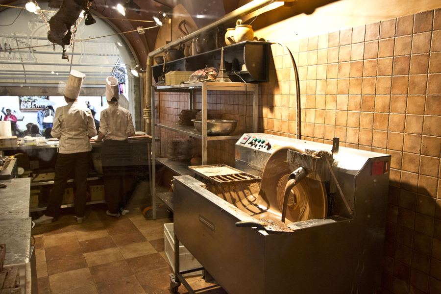 The trip starts just in front of the Manufacture in the exterior display. There you can see how chocolate is made.