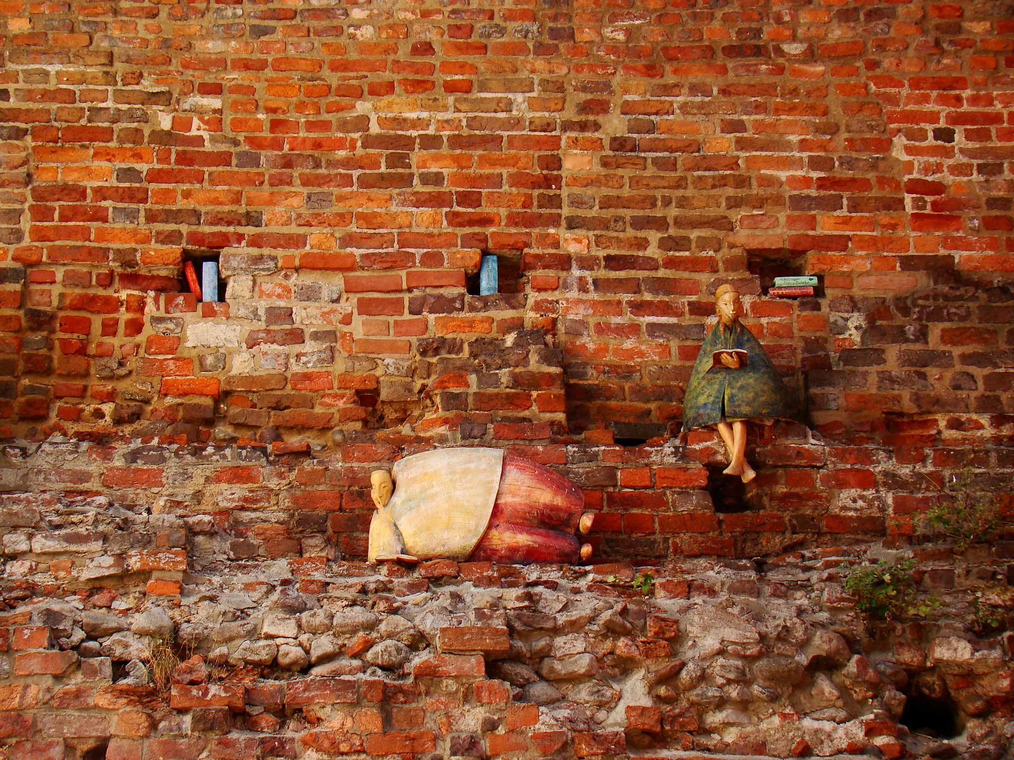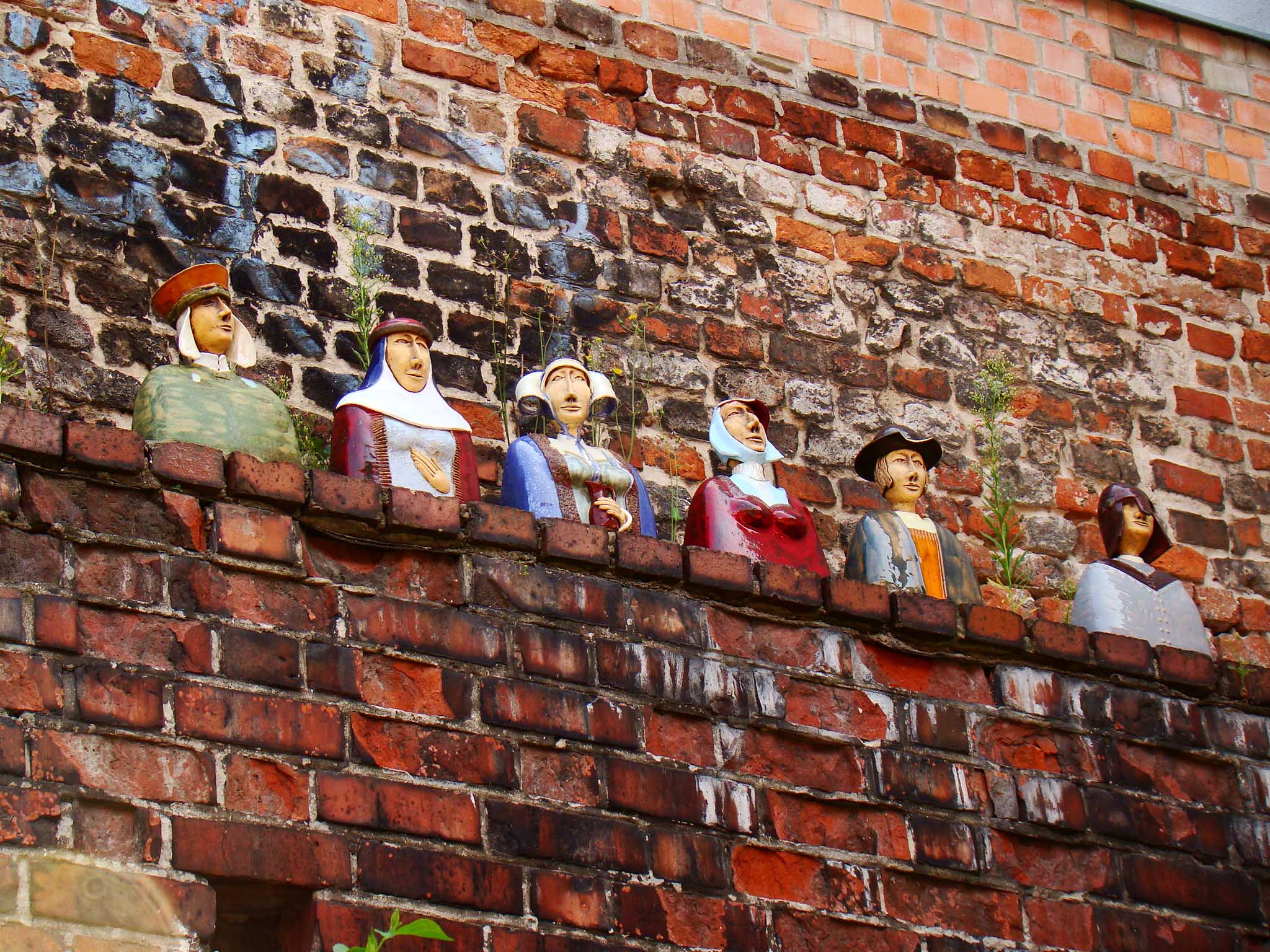 Unikalny klimat toruńskiej starówki tworzą ceramiczne figurki rozmieszczone w różnych zakamarkach. Figurki przenoszą w świat starego Torunia oraz przybliżają nam jego historię. Na murach ciągnących się wzdłuż ulicy Podmurnej, możemy spotkać grupę średniowiecznych mieszczan, czytelników, czy nawet odzianego w płaszcz i hełm Krzyżaka.